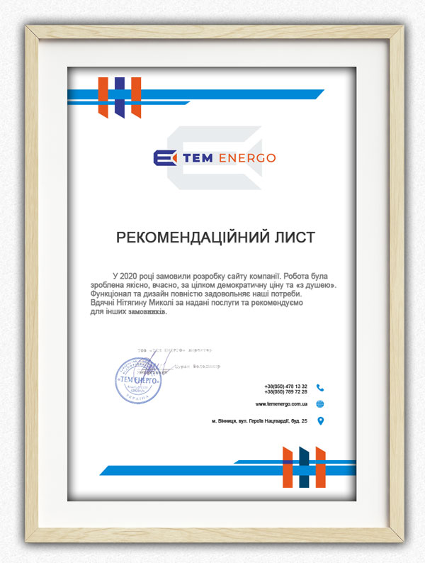 Рекомендаційні листи від наших клієнтів